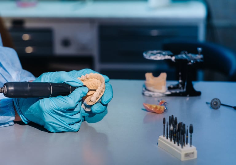 A prótese dentária é uma peça protética completa, adaptada sobre a gengiva, projetada para substituir os dentes da arcada superior, inferior ou ambas.